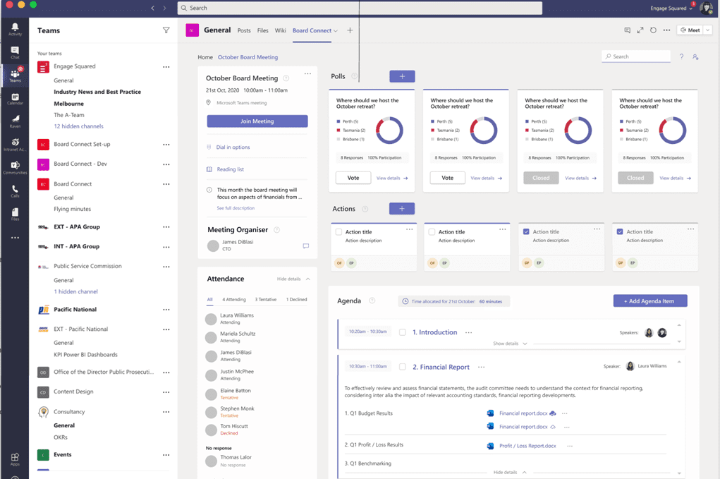 Leveraging the power of M365, Board Connect is a third-party board management Teams app, built by Engage Squared to meet all of your meeting requirements
