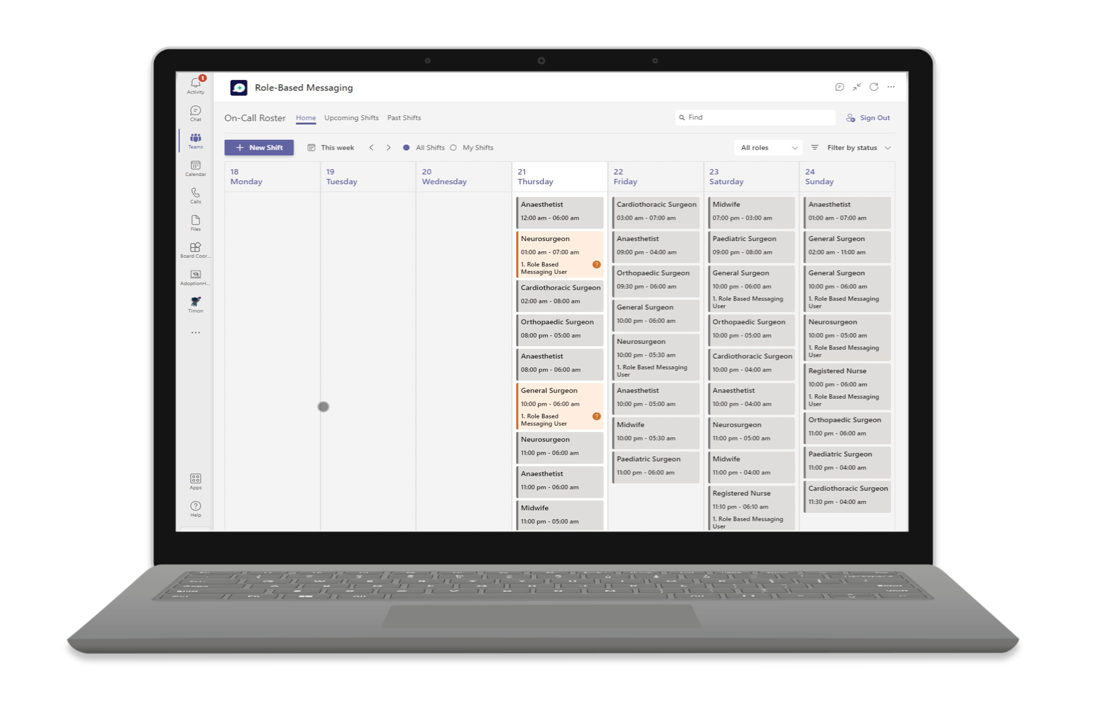 Shift Roster is a MS Teams app allowing medical staff to bypass the complex and inefficient switchboard systems and request specific roles rather than specific people. It’s a game changer for everyone involved.