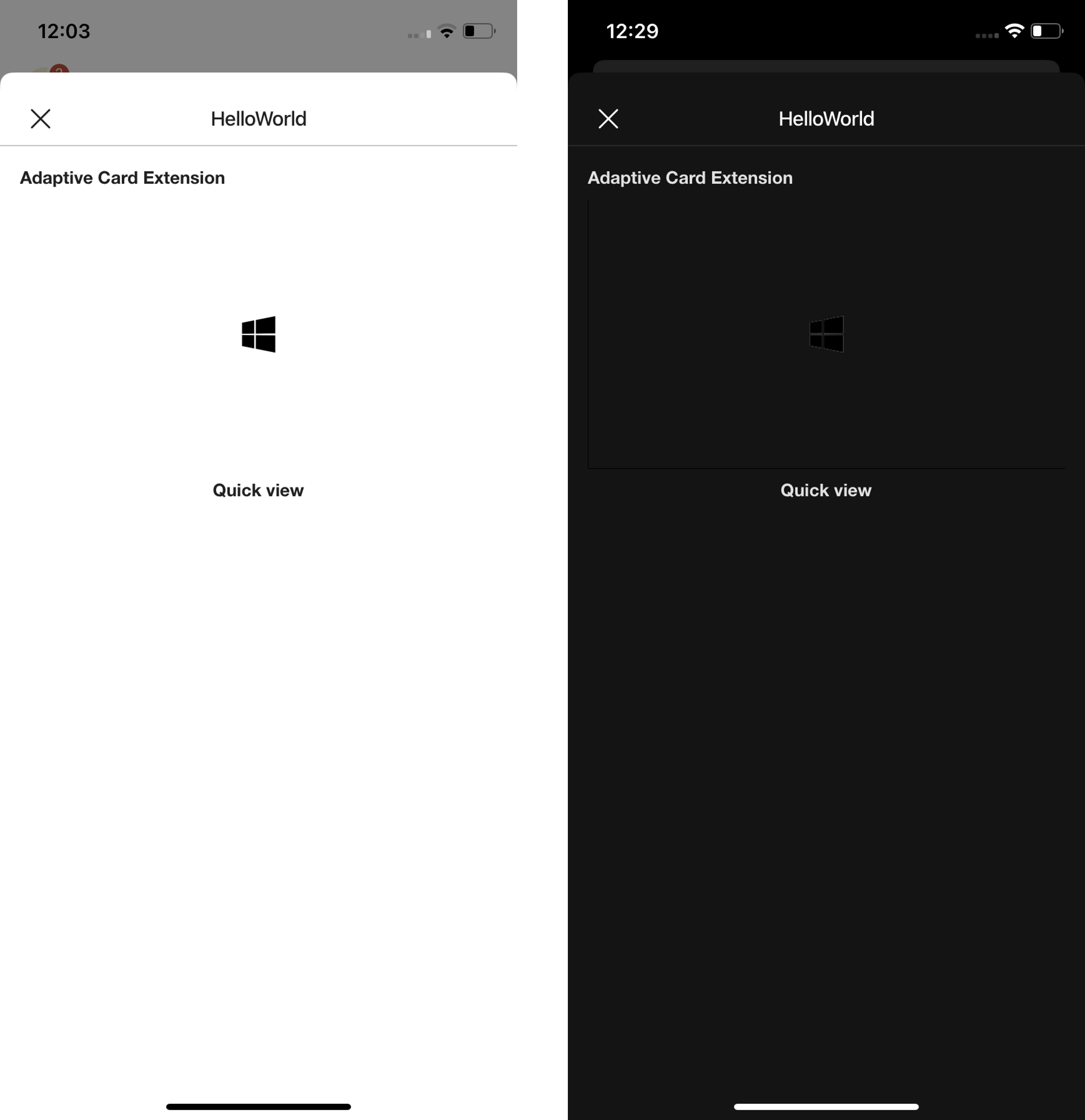 Dark mode helps some users to focus and absorb information. With most of M365 offering dark mode, Viva Connections is finally catching up. You will have the opportunity to test your existing card Quick Views in Dark Mode and we encourage you to do this to ensure a seamless transition, regardless of the theme preference.