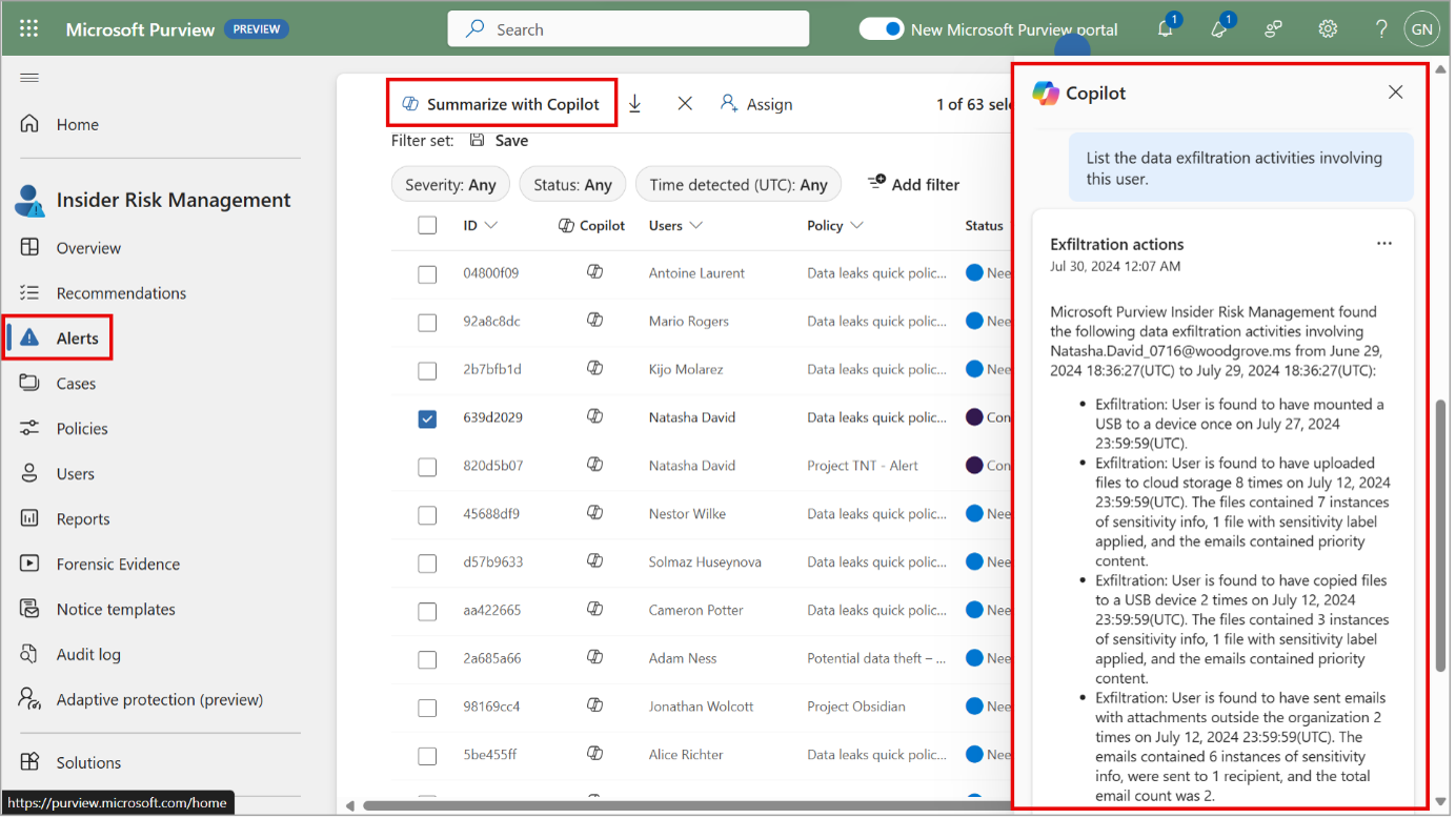 9. Microsoft Purview: Enhanced alert and user investigation with Microsoft Copilot for Security