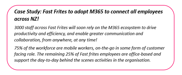 During a discovery or planning phase of an implementation project, we begin by identifying all impacted user groups. There are two defined impacted user groups in this scenario, but don’t be fooled – there will be more. The key thing to remember is that your employees will experience change and adapt to change differently, based on their role and responsibilities. An organisation cannot expect to see the same uptake from their FLW workforce as their office based team, if their needs to adapt to the change are different. Therefore, will optimal uptake and ROI be achieved if using a one-size-fits-all approach to change? How office-based employees use M365 to work more productively and efficiently will be different to how your FLW’s will use M365 to work more productively and efficiently. The benefits are there to be realised by all staff – but we have to make sure all have their own “GPS” for their journey that takes into account their needs!