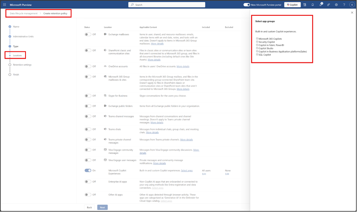 Microsoft is separating Copilot retention policies from Teams chats, allowing admins to create distinct retention policies for Copilot interactions. Before this rollout, Microsoft Teams chat and Microsoft 365 Copilot interactions are available together to be included or excluded in the Microsoft Purview Data Lifecycle Management policy in the Purview Compliance Center.