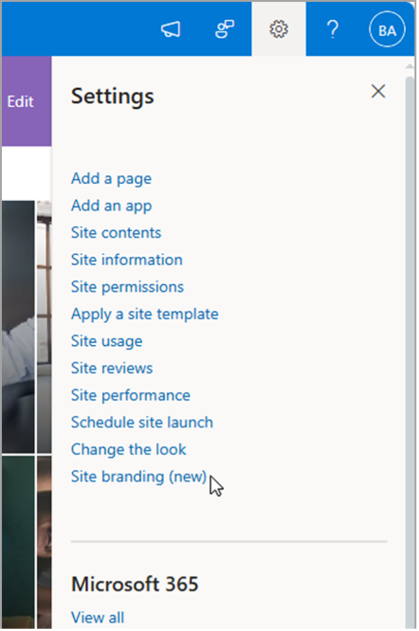 The Change the look experience will contain branding created in the SharePoint Brand Center (or can still be created with Microsoft PowerShell) for your organisation as well as your own local site branding. These will continue to be previewed and applied via the Change the Look experience for your sites and experiences.