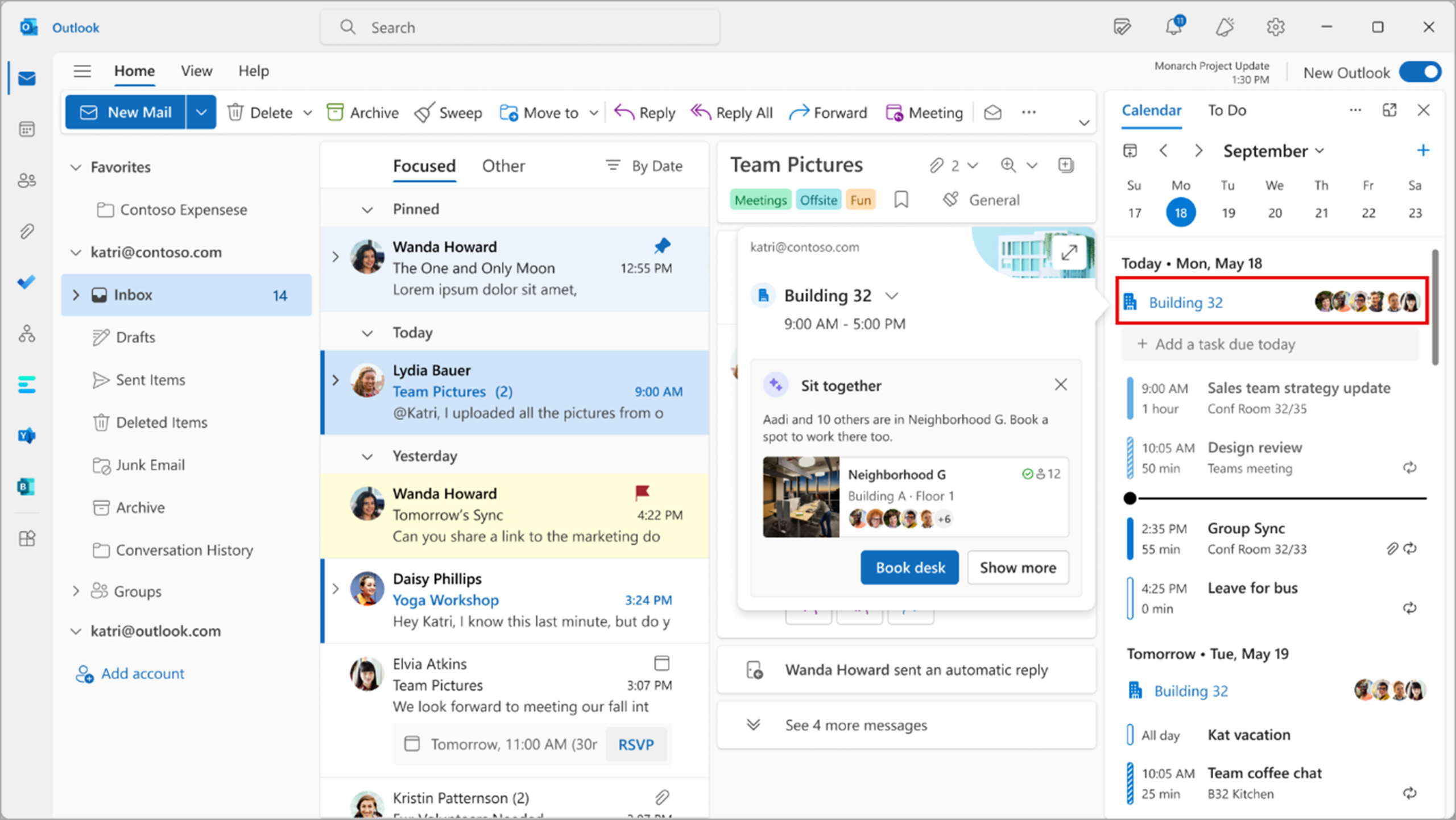 Outlook’s My Day pane will soon allow staff to view and update work hours and location information and also see who is coming to the office.