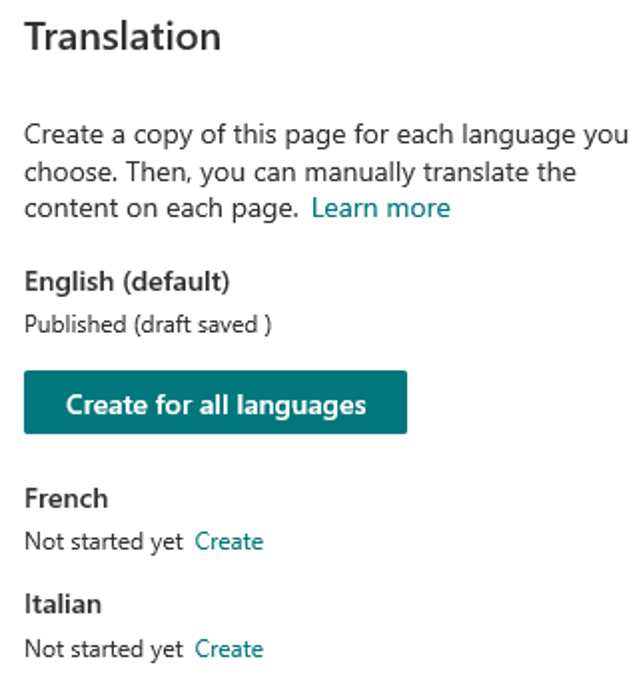 When considering a multilingual experience, we recommend ensuring that both the intranet’s homepage and key content pages/sites are also translated for a cohesive user experience.
