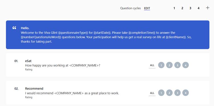Viva Glint shines as a leader in modern survey design, putting the spotlight on creating engaging experiences for employee feedback. By keeping surveys concise yet impactful, valuing open-ended feedback, and introducing a dynamic rotation of questions, Viva Glint not only facilitates efficient data collection but fosters meaningful organisational development.