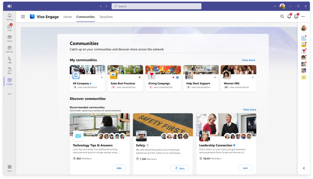 Microsoft describes Viva Engage as a way to “give leaders a new way to shape culture…by unlocking communication and engagement opportunities for everyone. Viva Engage brings people together across the organisation to connect with leaders and co-workers, find answers to questions, share their unique story, and find belonging at work.”