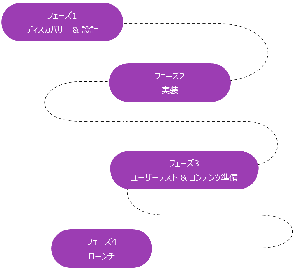ユーザー検証および本番コンテンツ準備フェーズでは、当社はお客様の本番を想定したユーザー検証の支援をします。また、本番コンテンツ公開に向けて、ユーザーエクスペリエンスを考慮したデザイン、ターゲット顧客に向けたコンテンツを作成できるよう、お客様を研修等で支援します。また、最終的な本番稼働までもれなく支援します。