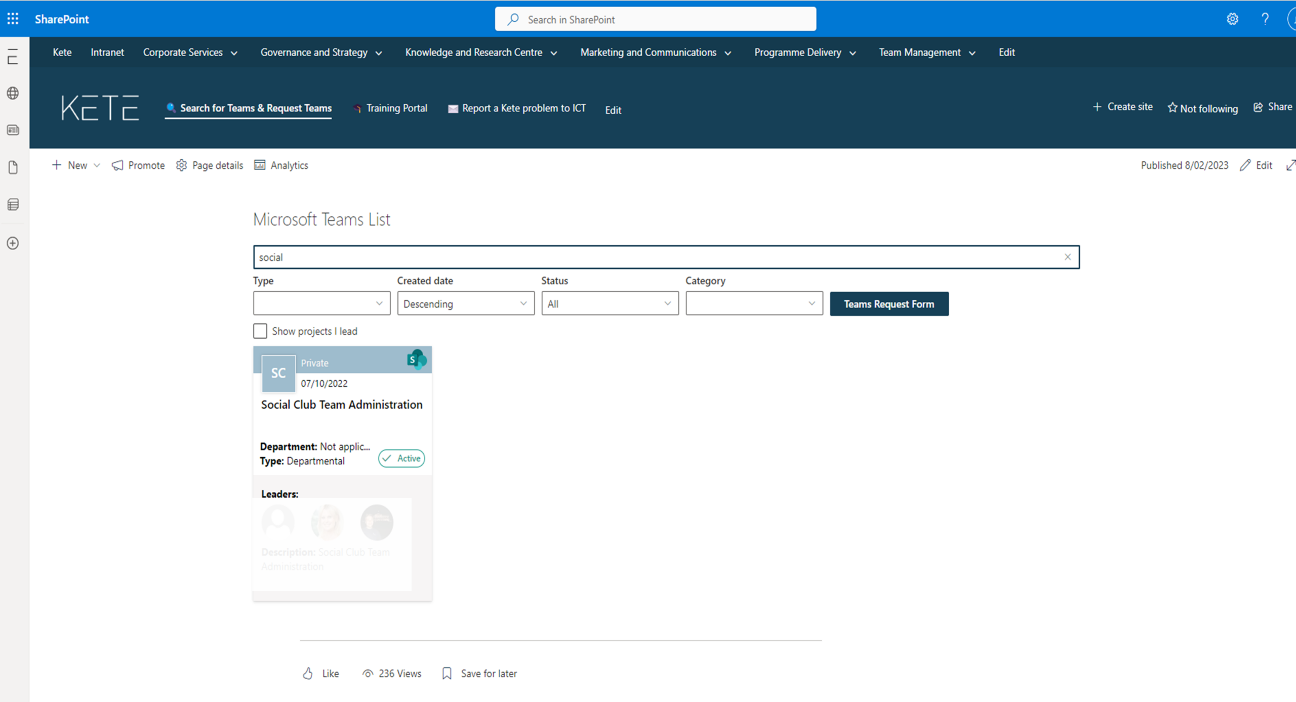 Having previously worked together on their SharePoint Online intranet, Engage Squared were delighted to implement our Teams Creation and Governance Application to enable a governed Team creation process via their intranet.