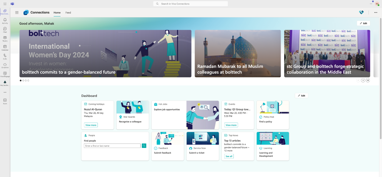The challenge for bolttech wasn’t simply implementing a new intranet homepage and the Viva Connections dashboard. It was about setting the right tone for a larger digital transformation journey.